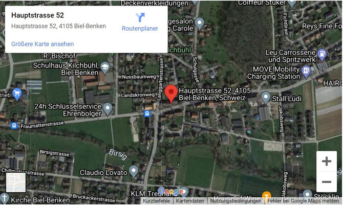Von dort gehen Sie ca. 2 Min. auf der rechten Seite der Hauptstrasse entlang Richtung Biel-Benken Dorf.